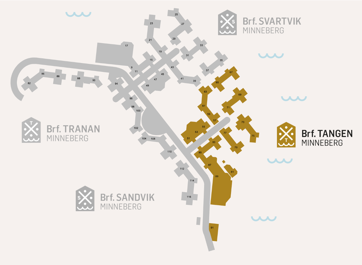 Under den här menyn finns allmän information om Brf Tangen, en av fyra bostadsrättsföreningar som ingår i Minnebergs samfällighet, varav Brf Tangen är den näst största med 312 lägenheter. Kartan nedan visar föreningens placering i Minneberg.