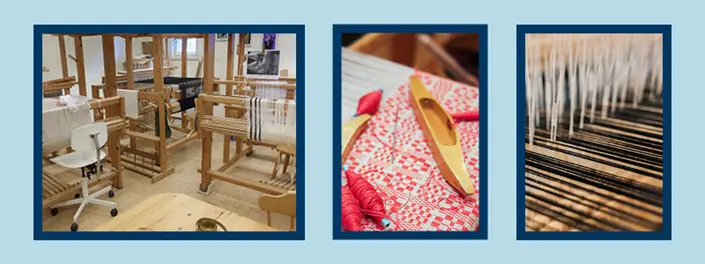 Vävstuga har funnits i området sedan ca 20 år. Lokaler och väverskor har växlat under åren. Vi har 6 stycken vävstolar i olika storlekar där vi sätter upp varierande vävar till mattor, handdukar, dukar, löpare osv. Verksamhet alla dagar.